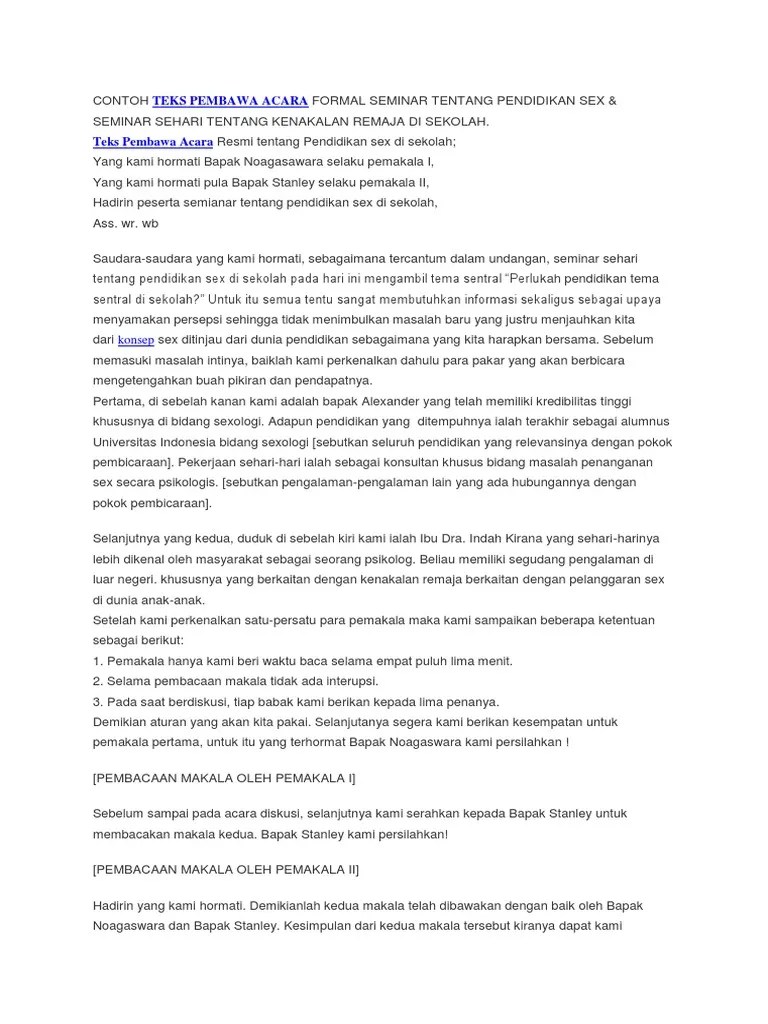 Kunci sukses sebagai pembawa acara tentu dengan komunikasi yang efektif. Salah satu contoh acara formal lainnya yaitu seminar. Acara selanjutnya adalah acara inti / seminar pendidikan fakultas bahasa . Daftartias tanjung wilisf o llo wnulisperempuan pecinta kopi, lm, dan buku. Formal sosialisasi kewirausahaan script mc pembawa acara seminar .