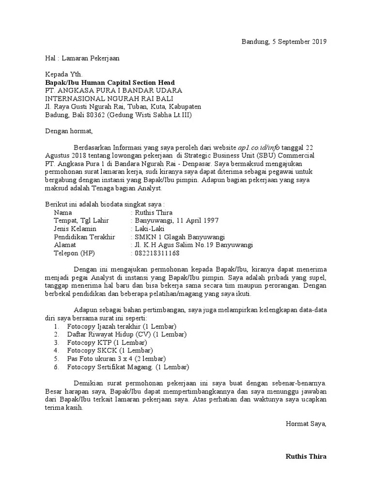 Dengan surat ini, saya bermaksud mengirimkan lamaran kerja kepada perusahaan anda untuk melakukan magang selama tiga sampai enam bulan di . Langkah awal untuk melaksanakan pekerjaan magang ini adalah menggunakan aplikasi magang, di mana surat lamaran dapat dikeluarkan oleh agen atau individu. Bagian ini terbilang cukup penting. Fotokopi kartu mahasiswa · 3. Begini contoh surat lamaran kerja dan surat lamaran magang.